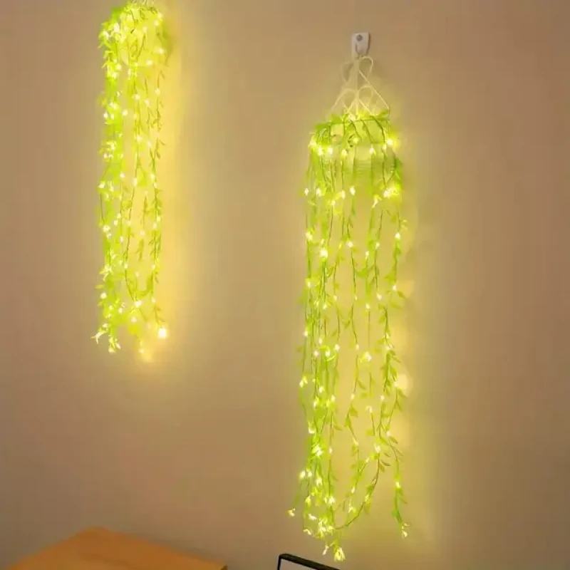Гірлянда "Зелена верба" з LED-підсвічуванням – чудова прикраса з рослинною тематикою. Він успішно працюватиме як прикраса банкетів та свят, а також створювати затишок у домашніх умовах.