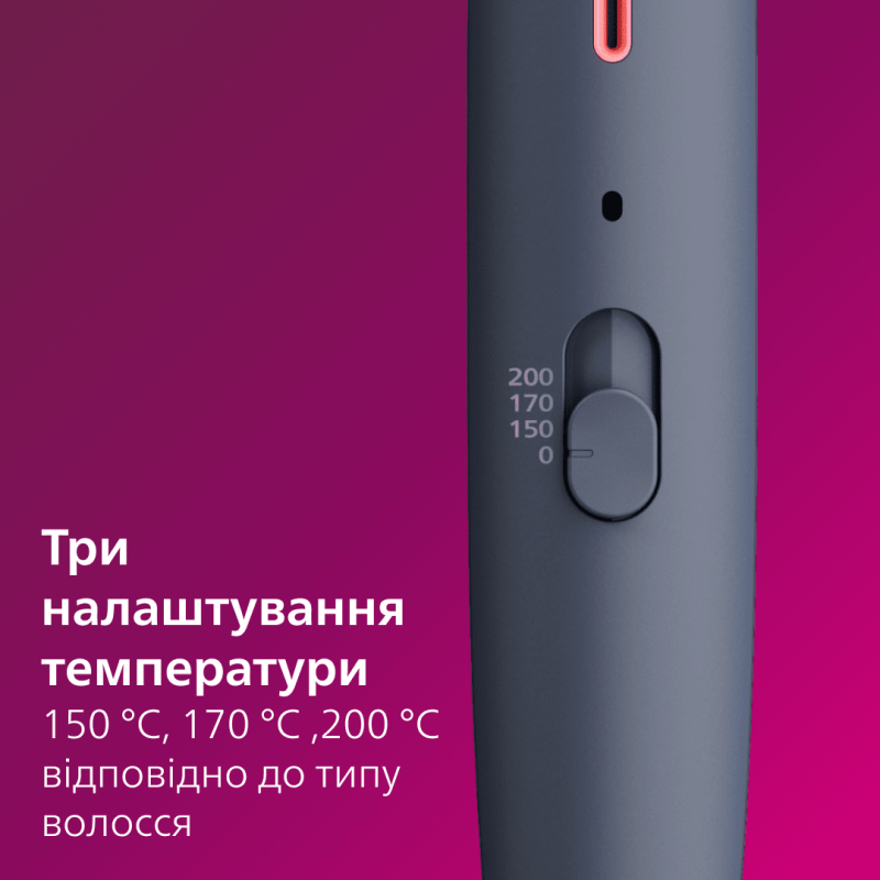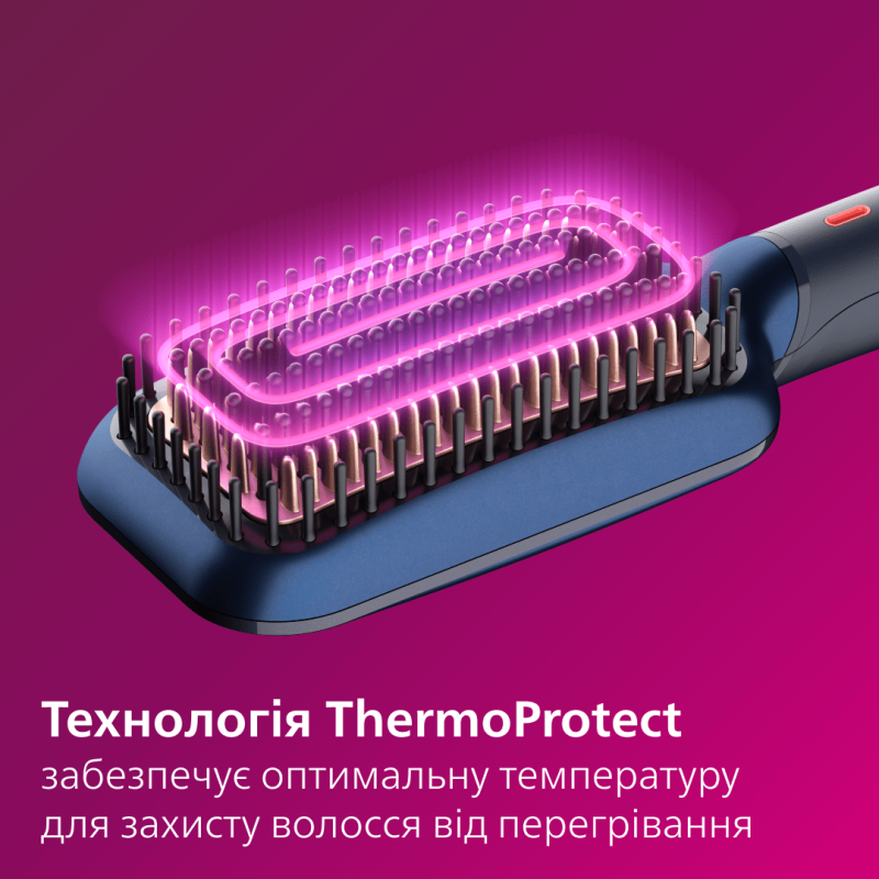 | Особливості | Час нагріву: 50 с Діапазон температури нагріву: 150 - 200 °С Гнучкий шнур Потрійні щетинки Технологія ThermoProtect Керамічне покриття з аргановою олією |