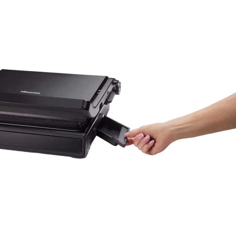 Гриль простий у використанні та обслуговуванні, тому ви завжди можете розраховувати на ідеальний результат. Вся лишня рідина стікає у піддон, тому вам не потрібно турбуватися про тривале очищення. Він розумно розміщений збоку, щоб збирати надлишки рідини з обох панелей. Це елегантне рішення зробити ваше життя з грилем ще легшим.