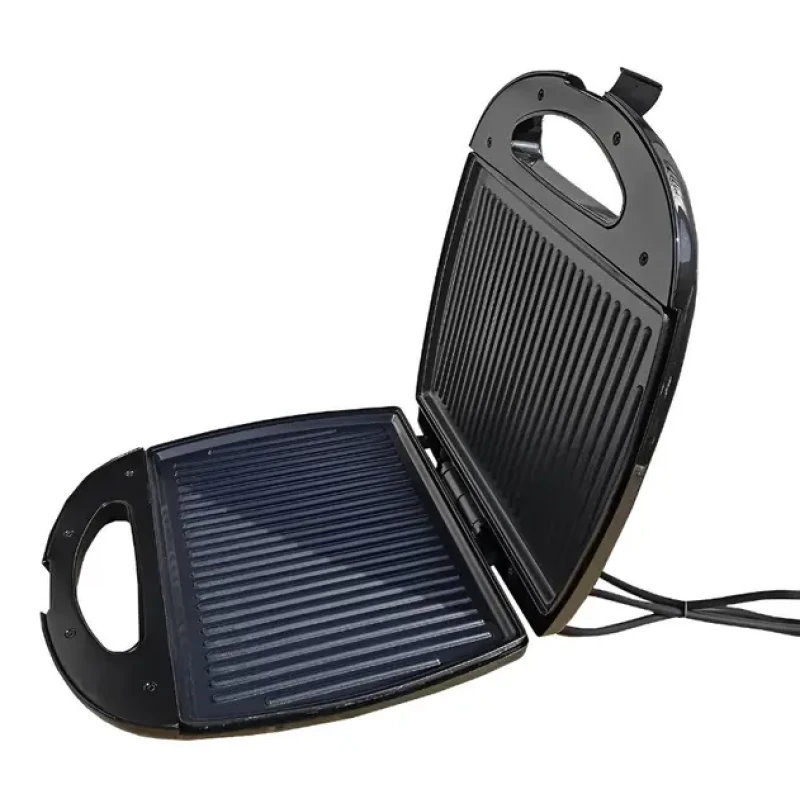 Електрична сендвічниця чудово підходить для приготування гарячих сендвічів, паніні. Можна смажити чи розігрівати стейки, сосиски, овочі. Ребристі пластини вкриті антипригарним матеріалом, що робить їжу здоровою та легкою. Спокійно можна готувати без олії та жиру!