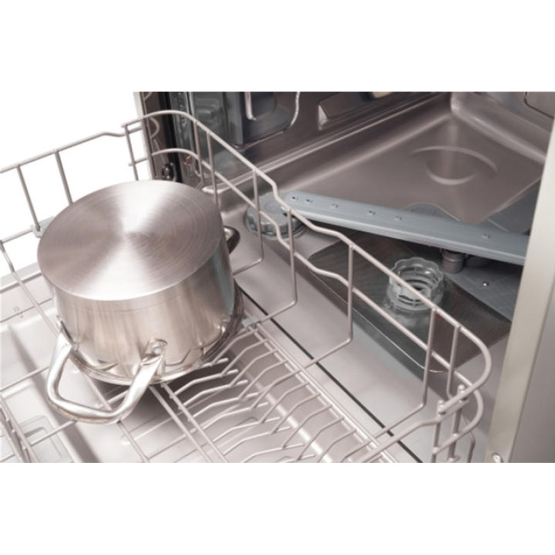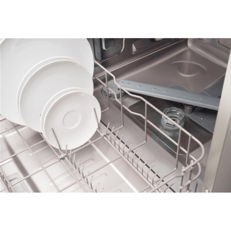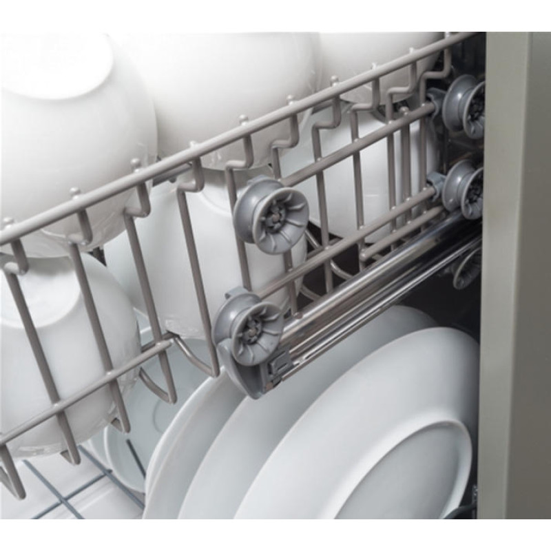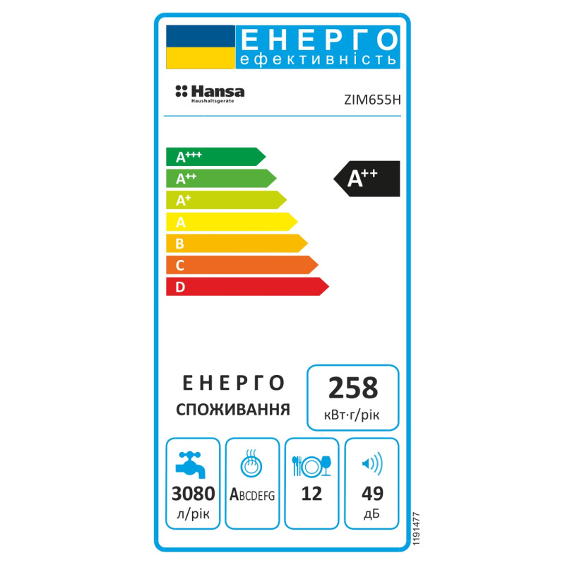Вбудована посудомийна машина Hansa ZIM655H розрахована на 12 комплектів, має 5 програм, включаючи швидке та еко-миття. Рівень шуму складає 49 дБ, споживання води – лише 11 л за цикл. Клас енергоефективності A++ гарантує ощадливе використання ресурсів, а функції відкладеного старту та половинного завантаження додають зручності.