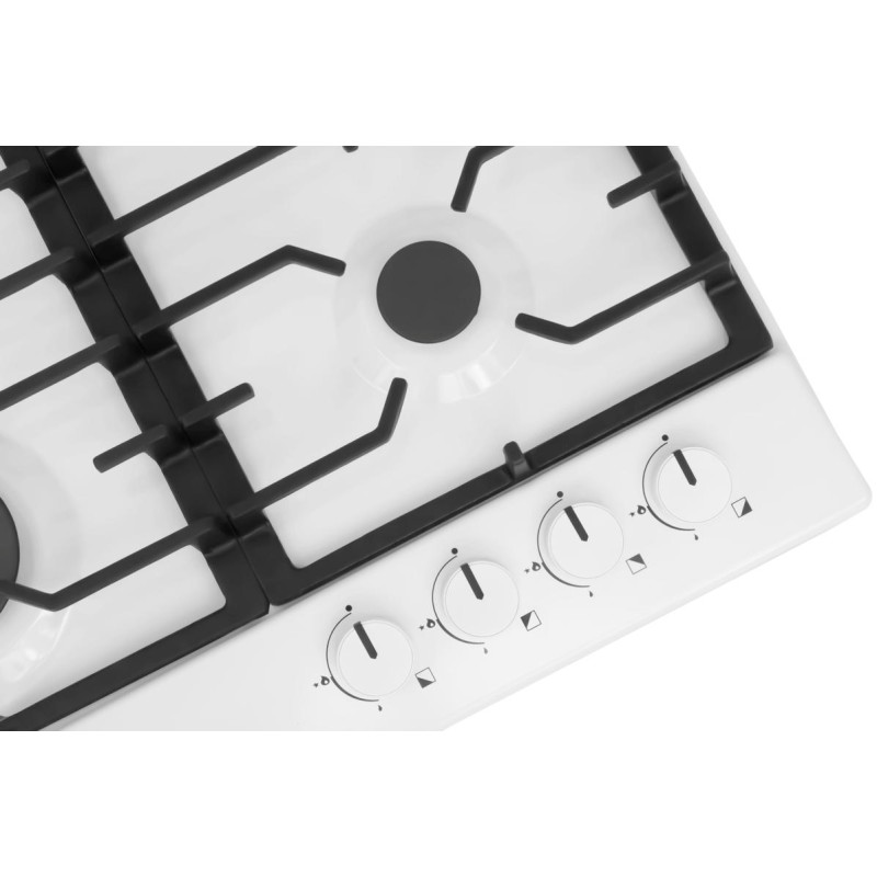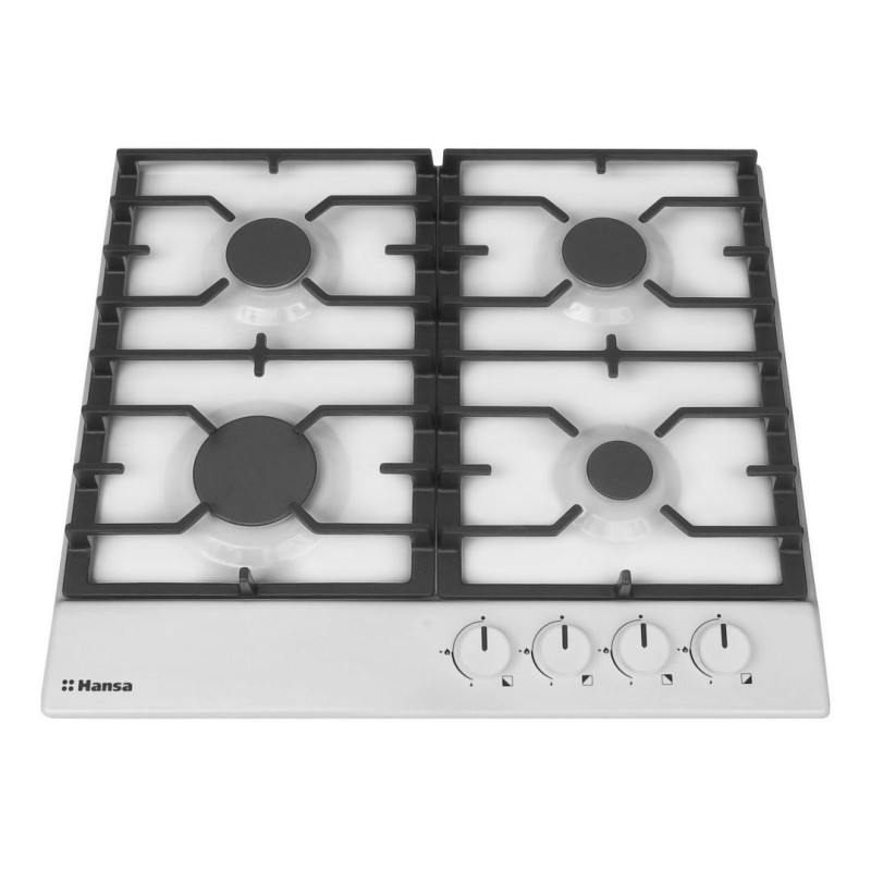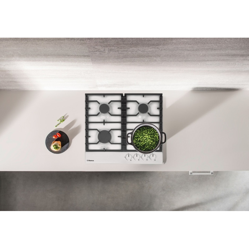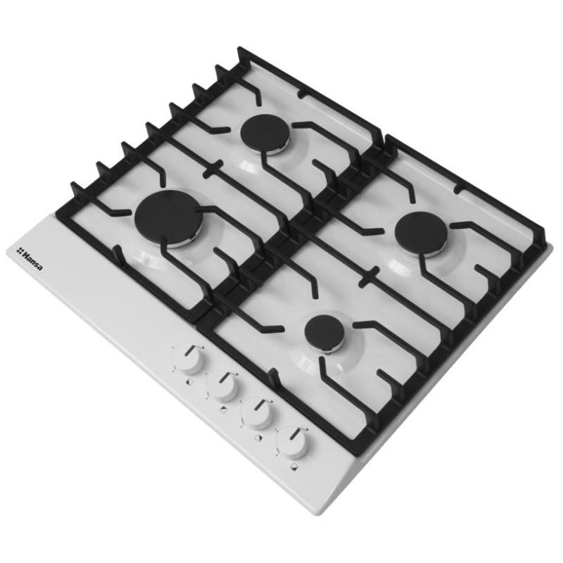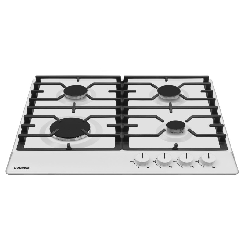 Hansa BHGW630301 – це 4-конфоркова газова варильна поверхня з фронтальним керуванням та стильним білим покриттям з емальованої сталі. Завдяки чугунним решіткам забезпечується надійна опора для посуду, а вбудоване іскрове запалювання в ручках робить використання зручним. Вбудований захист від згасання пламени підвищує безпеку під час приготування.