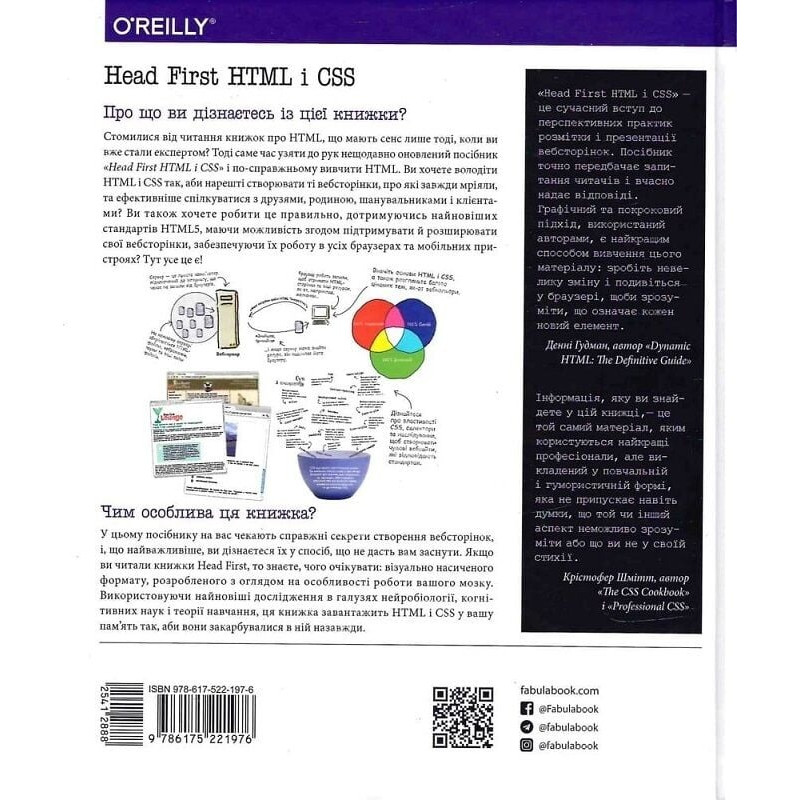 «Патерни проєктування» — ваша книжка, якщо вам хоч колись доводилося стикатися з проблемами дизайну програмного забезпечення. Вам не доведеться «винаходити колесо» — просто скористайтеся зведеним докупи величезним досвідом розробників і можливістю використовувати найкращі практики. Ви дізнаєтеся, навіщо потрібні патерни, побачите, як вони виглядають і працюють у «дикій природі», а призвичаївшись до їх використання, зможете витратити вільний час на щось більш складне і цікаве. Автори чудово показали, як патерни використовуються у Java API і як застосувати вбудовану підтримку патернів Java у вашому власному коді. Заразом ви засвоїте реальні принципи ОО-програмування, що залишаться з вами і тоді, коли доведеться працювати без патернів. Візуально насичений формат книжки розроблений із використанням новітніх досліджень в галузях нейробіології, когнітивної науки і теорії навчання. Тому весь її матеріал миттєво запам’ятовується, і невдовзі ви зможете з легкістю спілкуватися з іншими членами вашої команди на «таємній мові» патернів проєктування.