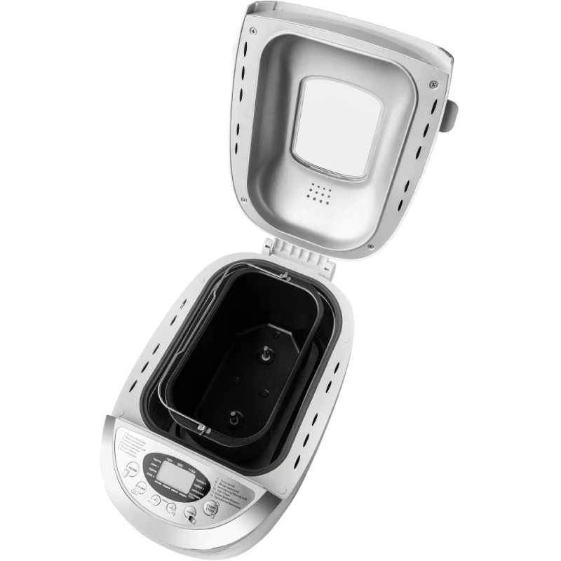 Хлібопічка має оглядове вікно, інформативний дисплей і можливість вибору кольору скоринки — від світлої до темної. Функція швидкої випічки допоможе заощадити час, а відкладений старт дає змогу запрограмувати приготування на зручний час. Після завершення процесу пристрій підтримує температуру, зберігаючи хліб теплим і свіжим.