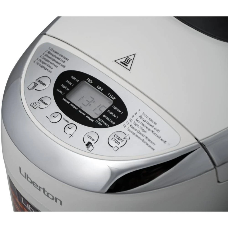 Модель LIBERTON LBM-6305 із потужністю 850 Вт забезпечує швидке та стабільне випікання різних видів хліба. Вона оснащена 12 автоматичними програмами, серед яких житній, французький, безглютеновий та цільнозерновий хліб, а також режим замішування тіста для піци й випічки свіжих булочок. Пристрій підходить як для щоденного використання, так і для кулінарних експериментів.