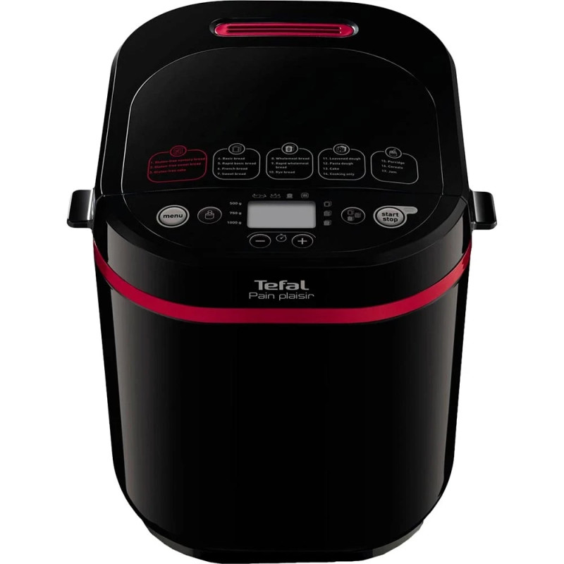 Хлібопічка Tefal PF240E38 Pain Delices порадує господарок автоматичним приготуванням. Зручна панель керування з інформаційним дисплеєм зручно розташована на верхній межі приладу. Кнопки з поясненнями дозволяють одним натисканням готувати смачний ароматний хліб з хрусткою скоринкою, випічку, сир і йогурти, а також тісто для пасти, піци та ін. На дисплеї видно всю потрібну інформацію для контролю за процесом і відображає активний режим, час, етап приготування, об’єм та ступінь обсмажування порції.
