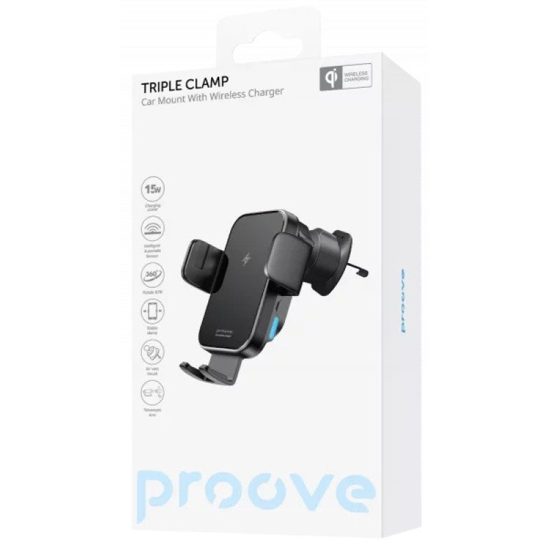 Triple Сlamp виготовлений із міцного алюмінію, що не обтяжує місце кріплення та пасує до салону автомобіля. Вхідна сила струму тримача становить 5V/2A, 9V/2A, 12V/1.25A, що дає можливість заряджати телефон с потужністю у 15W. Яка разом із протоколами зарядки: QC3.0, PD та AFC, дає змогу швидко відновити заряд смартфона.