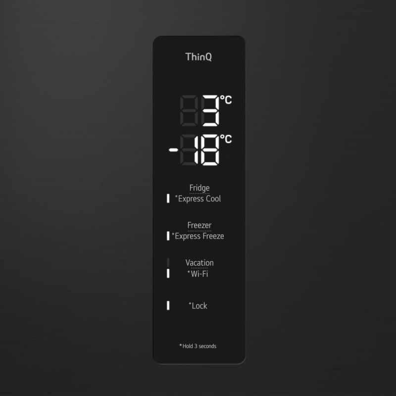 | Додатково | Металева полиця для пляшок. Технологія DoorCooling+: вентиляційні отвори на передній панелі холодильника допомагають підтримувати потрібну температуру, щоб продукти залишалися свіжими. У рамках технології Hygiene Fresh+ від LG використовується 5 етапний фільтр, що усуває більшість причин псування їжі: пил, грибкові суперечки, кислий, лужний запах та бактерії. |