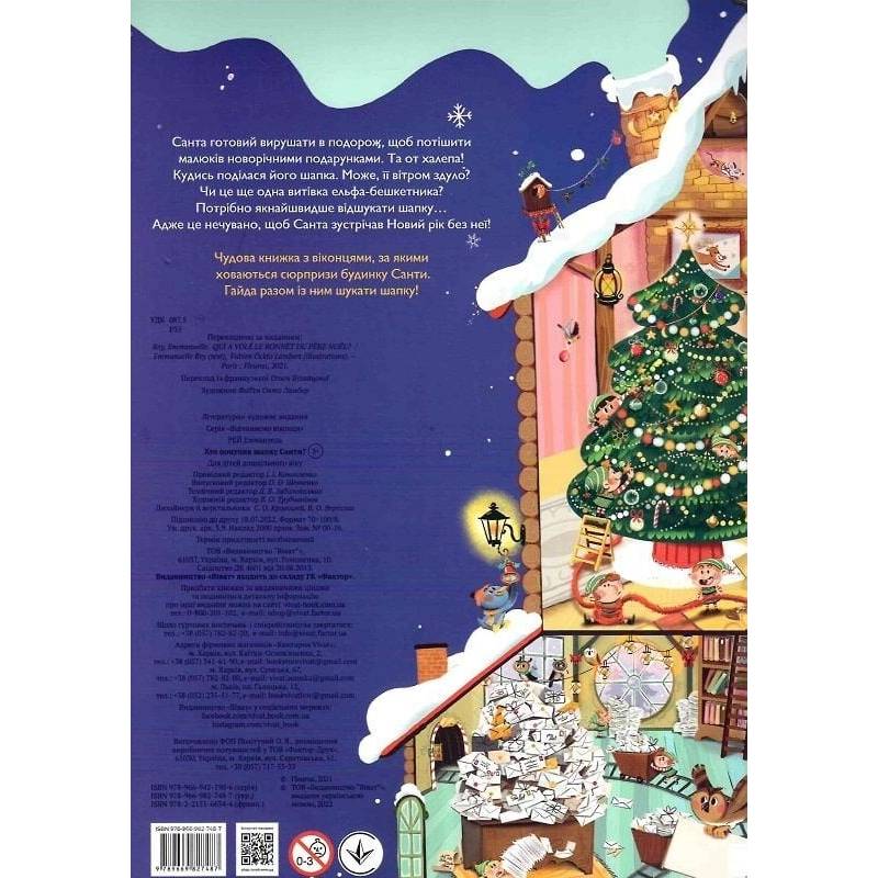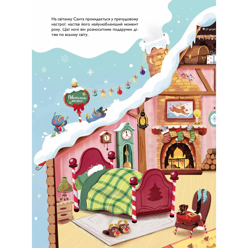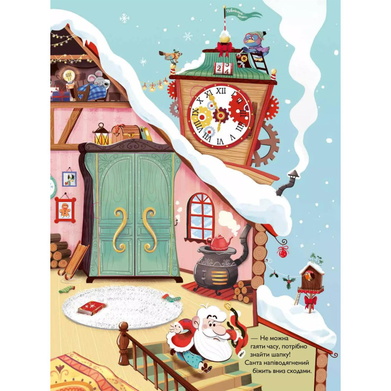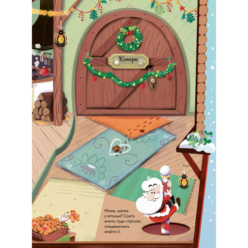 Чудова книжка з віконцями, за якими ховаються сюрпризи будинку Санти. Гайда разом із ним шукати шапку!
