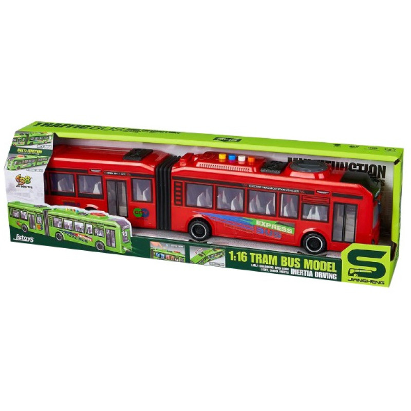 Інерційний трамвай 1:16, на даху кнопки керування звуком і світлом, двері відчиняються. Живлення: 3 батарейки типу AG13 (у комплекті). Розмір іграшки: 42х6.5х9 см. Упаковка відкрита коробка.