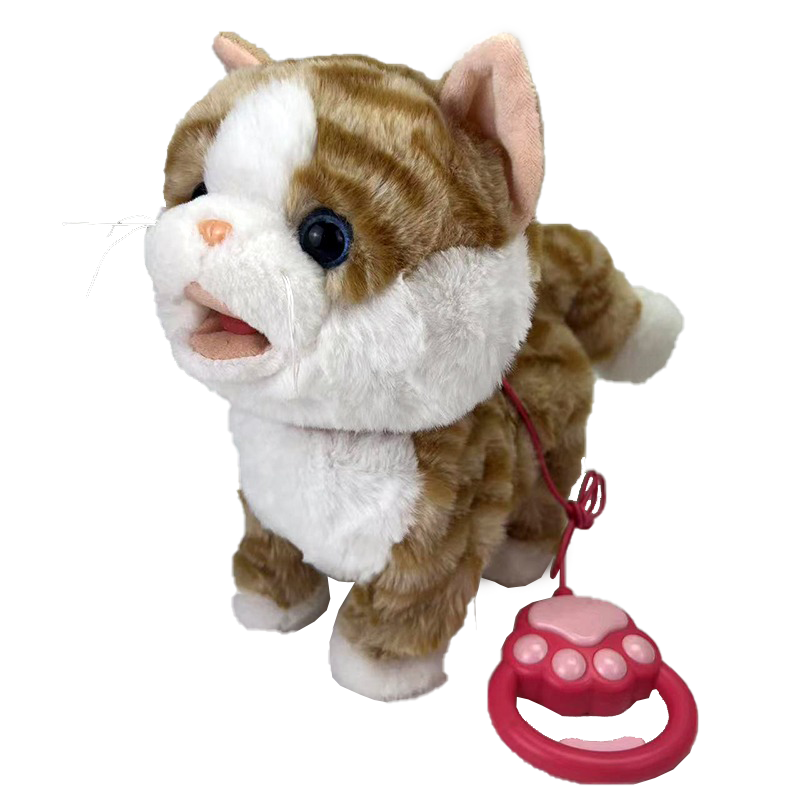 Інтерактивна м'яка іграшка: гуляє на поводку, має звукові ефекти, нявкає, виляє хвостом, лизькає мовою, реагує на щук, записує голос (повторюшка). Рекомендований вік: від 3х років. Живлення: 3 батареї типу АА (не входять до комплекту). Матеріал: поліестер, пластик. Розмір іграшки: 26х30х14 см.