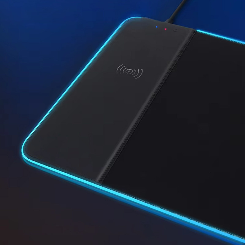 Килимок розміром 800*300*6 мм надає достатньо місця для вільного переміщення миші та одночасно виконує функцію бездротової зарядки для мобільних пристроїв із підтримкою QI-стандарту.