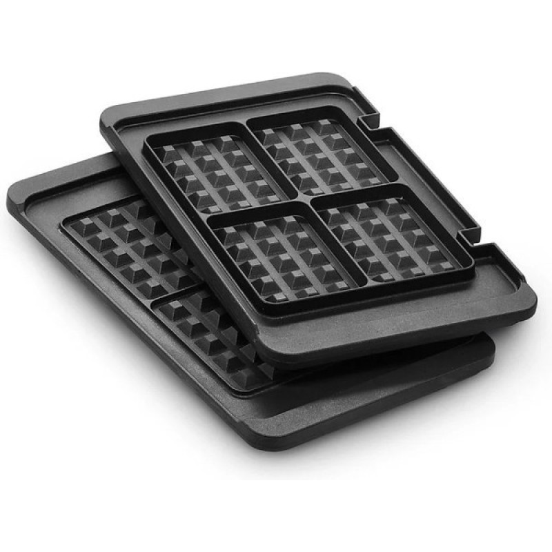 Пластини гриль ідеально підходять для приготування м'яса та овочів, а гладкі - для приготування бекону, яєць, млинців або риби. Крім того, вони мають антипригарне покриття і їх можна мити в посудомийній машині.