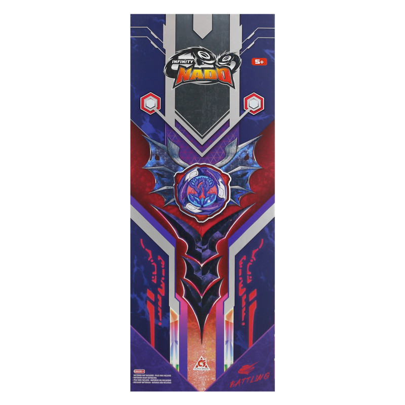 Infinity Nado VI серії Deluxe Pack – дзиґа нового VI покоління зазнала значних удосконалень, зокрема є можливість вибирати характер поведінки дзиґи на арені. З огляду на це незабутні емоції від ще більш видовищних і цікавих поєдинків гарантовано! Абсолютно нова система запуску дзиґи на арену реалізована за допомогою епічного лаунчера у формі меча, пускова система якого гарантує контрольований швидкісний старт з одночасним обертанням.