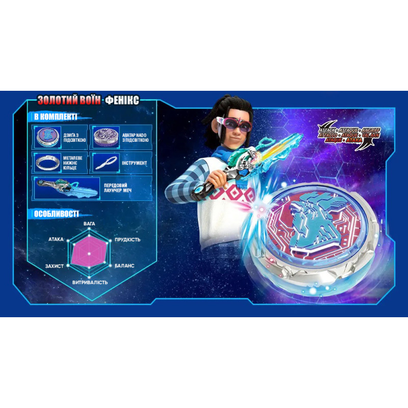 Приготуйтеся до найепічнішого запуску дзиґи Infinity Nado. Новий пусковий пристрій Epic Launcher Advanced Pack Gold Warrior Phoenix постає у вигляді вражаючої голови звіра а оновлена дзиґа забезпечить неймовірний захист.