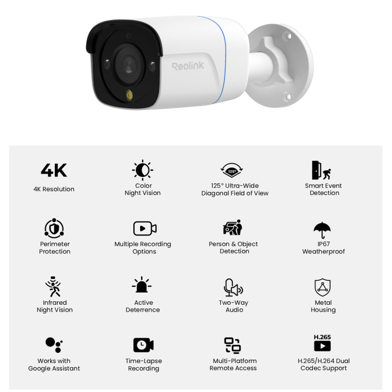 | Додаткові дані | підтримка Google Assistant, Reolink NVR |
