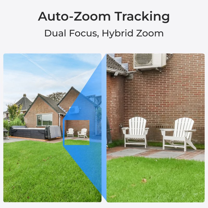 Двооб’єктивна камера може панорамувати та нахиляти (до 355° по горизонталі, 90° по вертикалі) для автоматичного відстеження об’єкта та відображення його як у панорамному, так і у збільшеному вигляді.