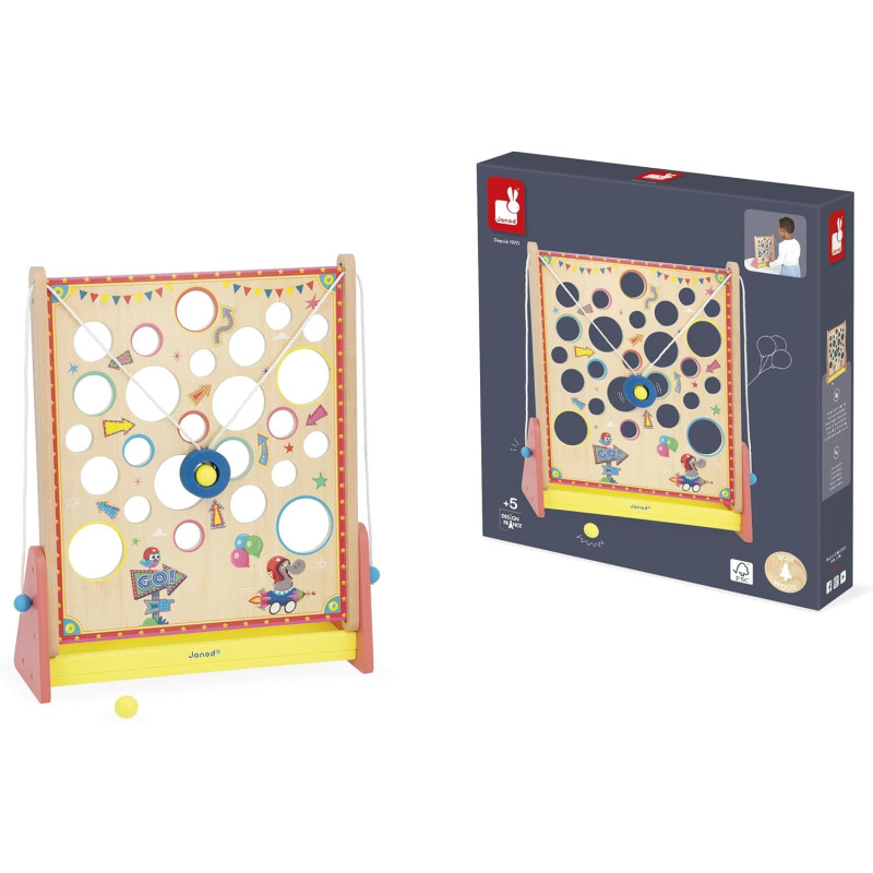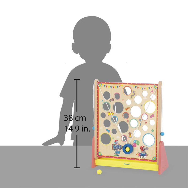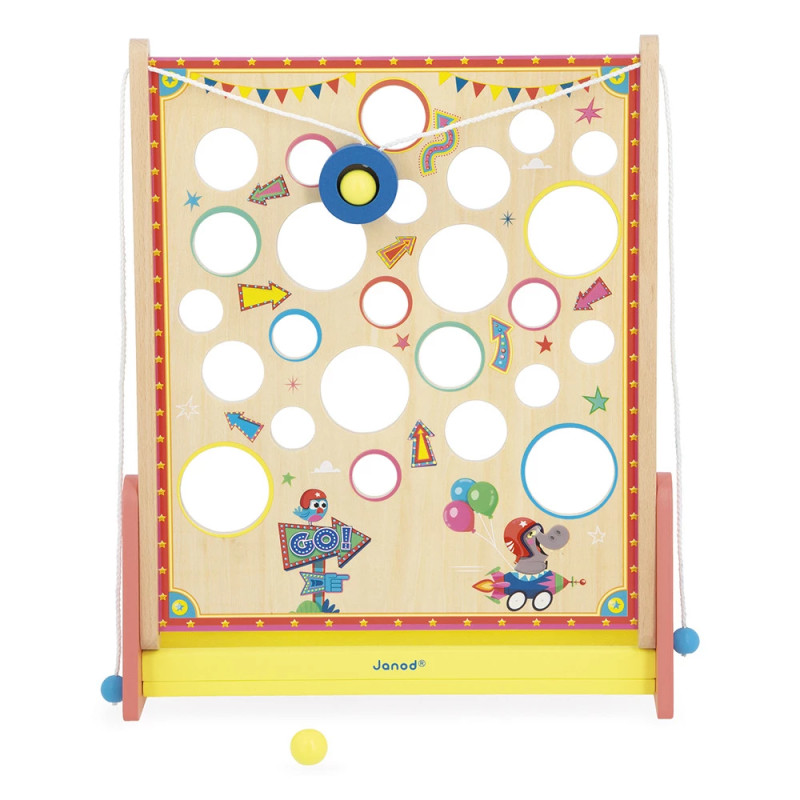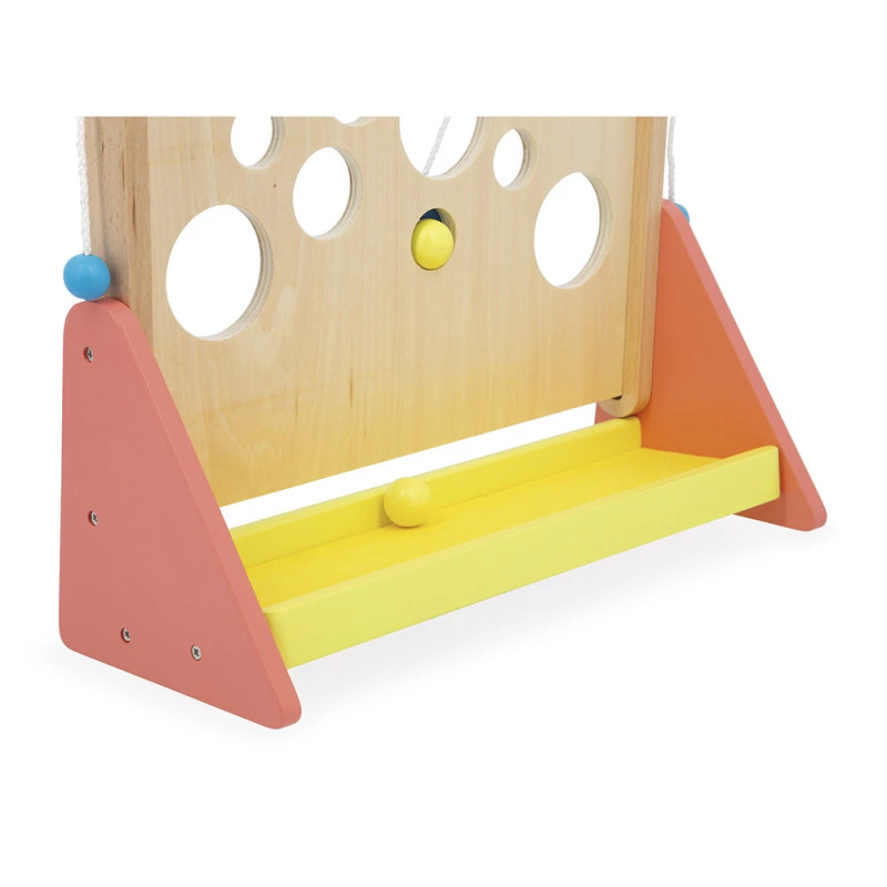 Дерев'яна гра на спритність від 5 років: керуйте двома веревками і проведіть кульку вгору лабіринтом, уникаючи отворів. Розвиває координацію, увагу та терплячість, підходить для сімейних змагань. У комплекті 2 дерев'яні кульки та підставка з фетровим покриттям для тихого падіння. Виготовлено з дерева із сертифікацією FSC™.