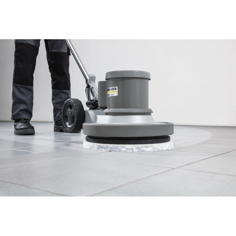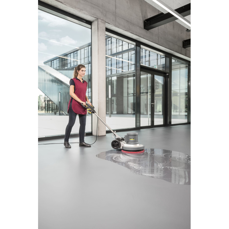 Однодискова підлогомийна машина Karcher BDS 43/150 C Classic призначена для очищення твердих, еластичних і текстильних підлогових покриттів у комерційних приміщеннях. Потужний двигун 1500 Вт забезпечує стабільну роботу та високий крутний момент. Планетарний редуктор із металевими шестернями підвищує зносостійкість і зменшує потребу в обслуговуванні. Робоча ширина 430 мм дозволяє ефективно обробляти значні площі. Конструкція забезпечує стабільне керування та рівномірне очищення поверхонь.