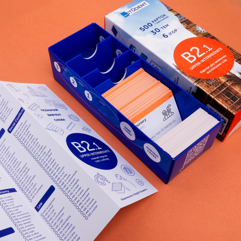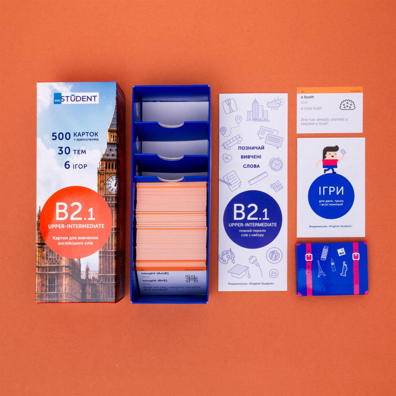 Картки - це один із найбільш популярних методів збільшення словникового запасу. Картки від видавництва English Student рівня В2.1 допоможуть збільшити словниковий запас одразу на 500 слів!
