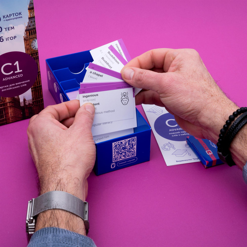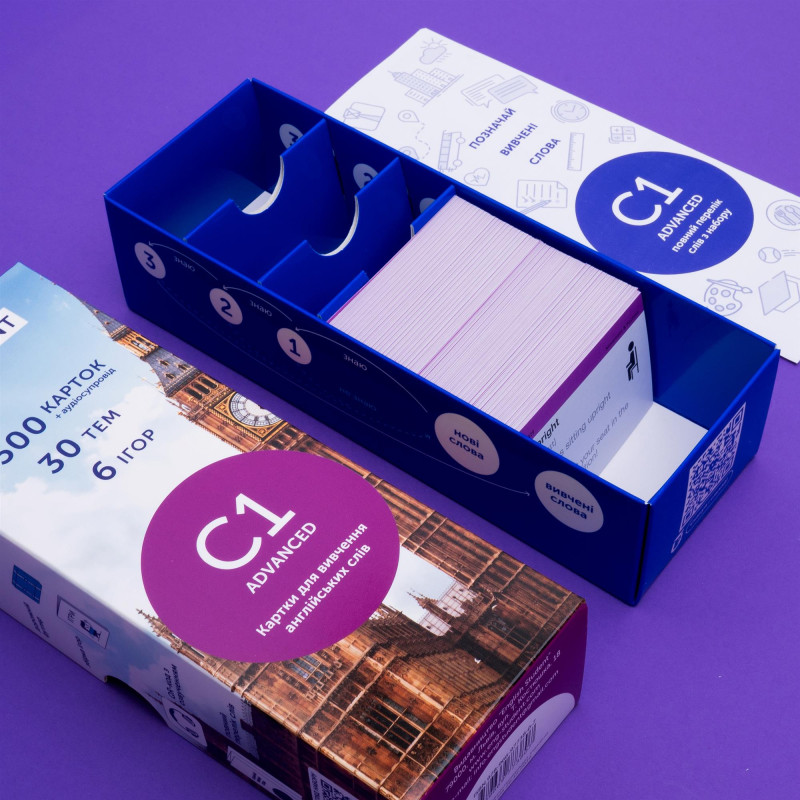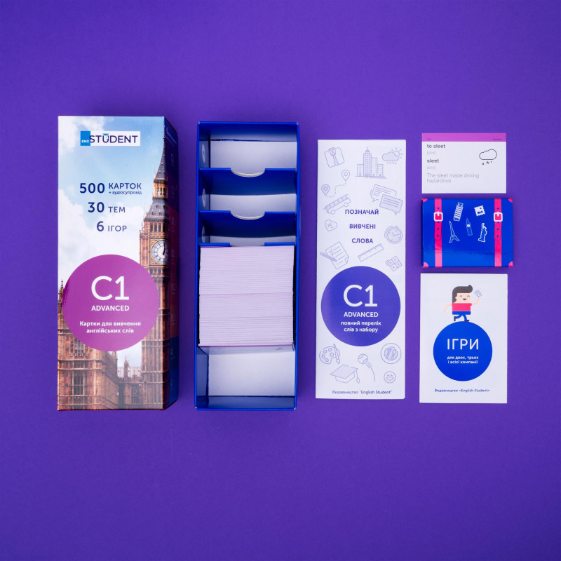Спілкуєшся англійською на будь-яку тему і підтримуєш бесіду навіть з носіями? Хочеш отримати сертифікат CAE, IELTS чи TOEFL? Картки - це один із найбільш популярних методів збільшення словникового запасу. Обирай картки англійських слів від видавництва English Student рівня С1. Та вивчай понад 500 нових слів за місяць.