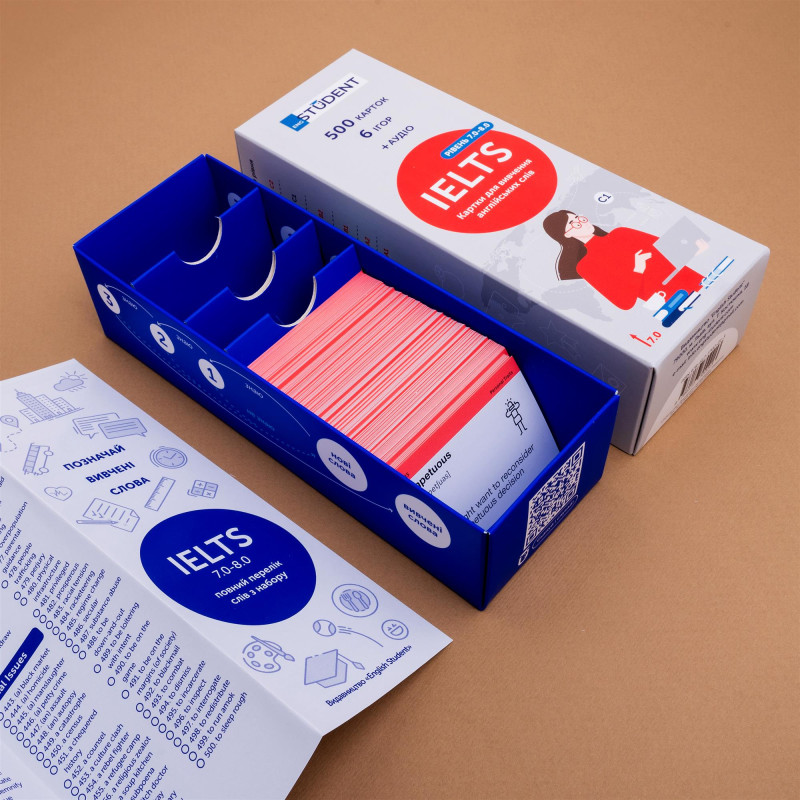 - 500 карток для підготовки до міжнародного тесту IELTS;