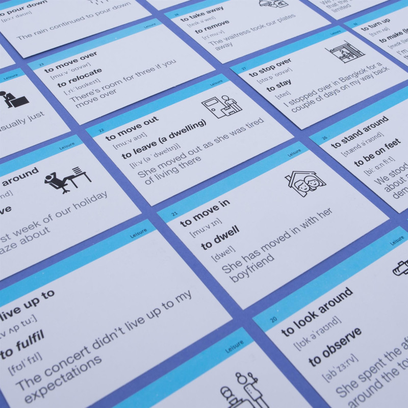 Phrasal Verbs (рівень В1) — набір карток для вивчення фразових дієслів для тих, хто тільки на середині вивчення англійської мови. Тут зібрані найпопулярніші фразові дієслова, які допоможуть твоїй англійській level up. Відтепер ти зможеш не перепитувати, що мав на увазі англієць чи американець. І знатимеш, у яких контекстах використовувати різні значення. Вибирають ті, хто хоче урізноманітнити своє мовлення та підвищити знання. У цьому наборі 500 фразових дієслів та 500 прикладів їх вживання.