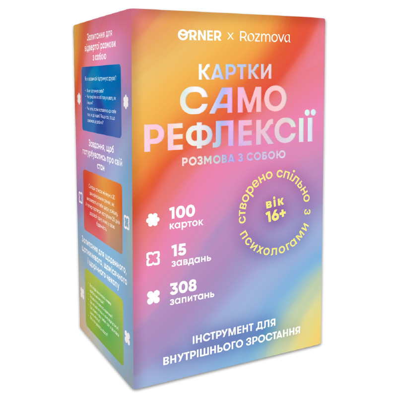 «Картки саморефлексії: розмова з собою» — це психологічна гра, у якій ти тільки виграєш. Бо починаєш помічати себе, свої почуття та потреби.