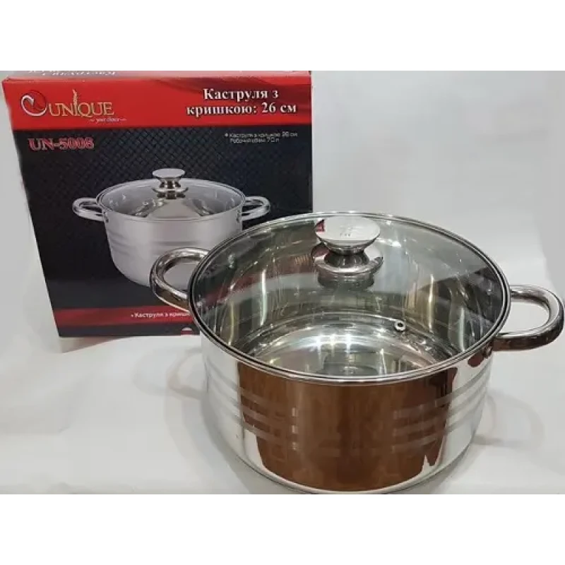 Каструля Unique UN-5008 із прозорою кришкою 7 л