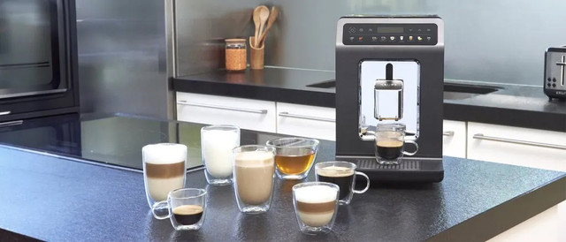 Елегантний сучасний дизайн, завдяки якому кавомашина доповнить інтер'єр будь-якої кухні.