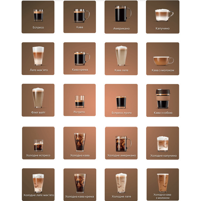 Великі іконки з напоями, великий і чіткий текст та інтуїтивний інтерфейс дозволять будь-якому користувачеві легко розібратися в роботі кавової машини.