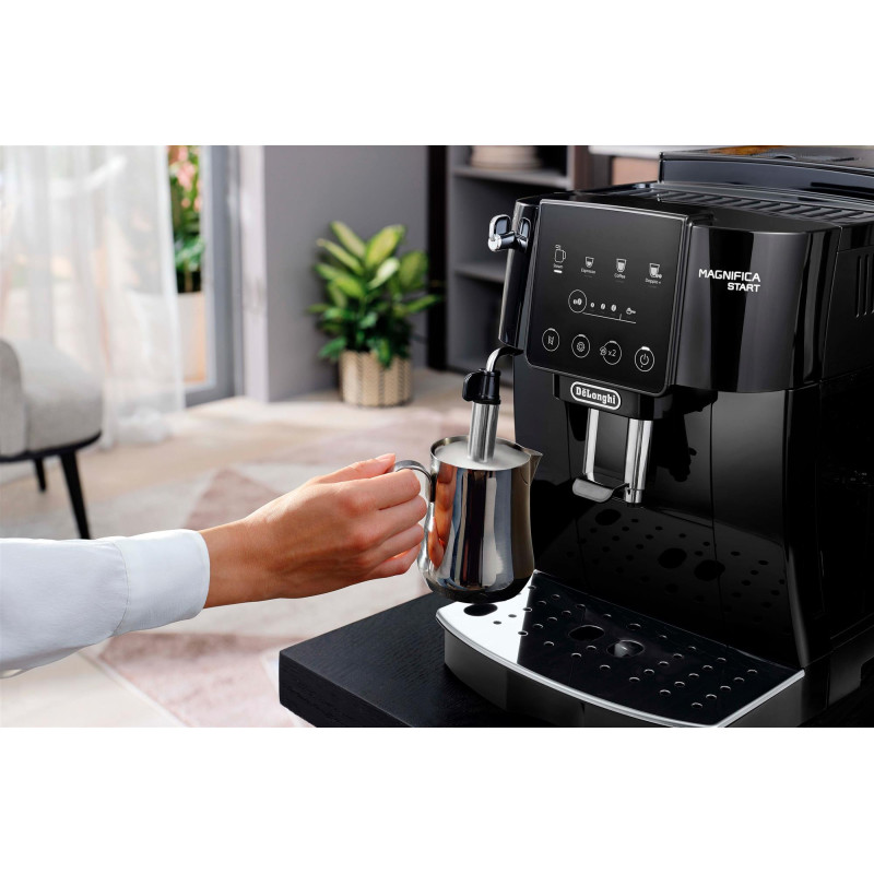 Витончений дизайн світлого корпусу цього приладу приховує справжнісіньку фабрику з виробництва кавових напоїв. Так, варто купити кавоварку DeLonghi ECAM 220.21.B Magnifica Start і ви зможете щодня насолоджуватися кращими кавовими композиціями, створеними в точній відповідності до загальновизнаної рецептури. Або навіть створювати власні рецепти, зберігати їх, а потім ділитися із гостями. Зручне сенсорне управління інтуїтивно зрозуміле навіть без поглибленого вивчення інструкції. Широкий функціонал та сучасні технології. Підтверджена надійність. Можливо, найкраща кавоварка у своєму класі.