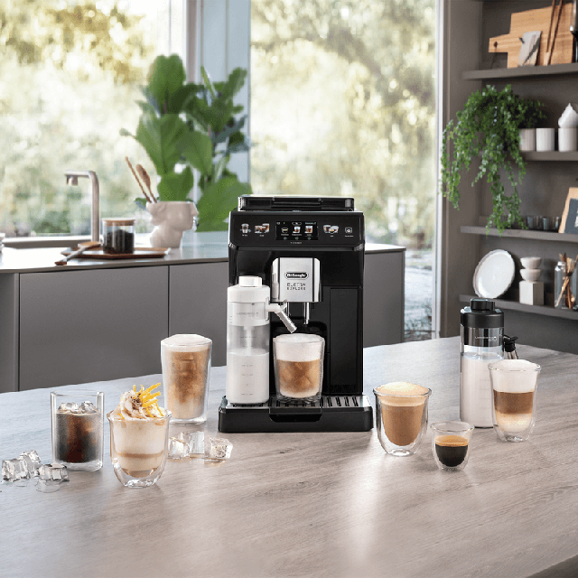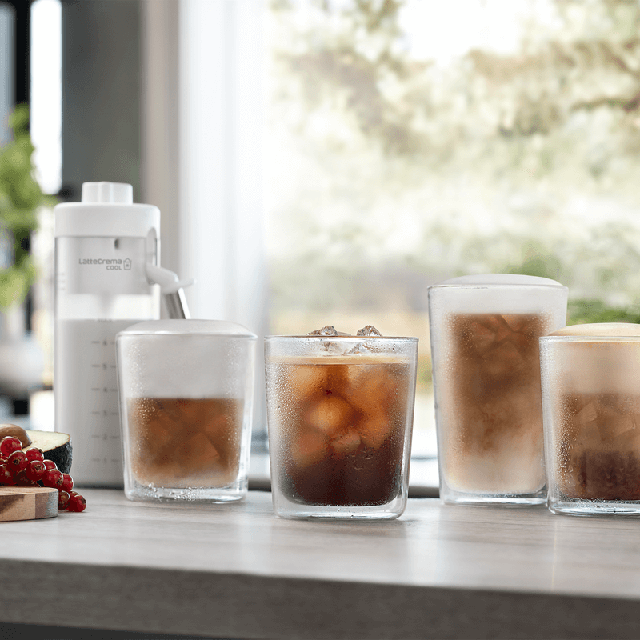 Eletta Explore оснащена інноваційною системою спінювання холодного молока LatteCrema Cool. Спеціально розроблена формула приготування напоїв, що включає каву, заварену при 75°C, ніжне молоко спінене при 20°C та охолодженне кубиками льоду, дозволяє зберегти природну солодкість і отримати ідеальний баланс смаку і температури. Відкрийте для себе світ холодних версій американо, капучино, флет уайт або латте макіато та безмежні можливості для експериментів.