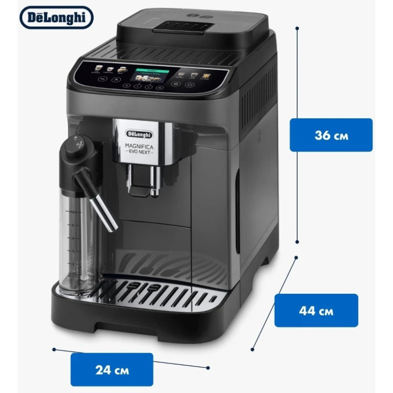 Насолодіться кращими кавовими напоями кожного ранку з новою кавомашиною DeLonghi Magnifica Evo Next, що заварює каву, як справжній бариста. Покращена система заварювання, персональні налаштування та широкий асортимент напоїв на інтуїтивно-зрозумілій панелі з сенсорним управлінням – вона стала довершеним втіленням традицій та інновацій. Всього 6 сенсорних кнопок забезпечать простий доступ до 10 кавових напоїв в меню від насиченого еспресо та доппіо+ до ніжного капучіно та латте макіато.