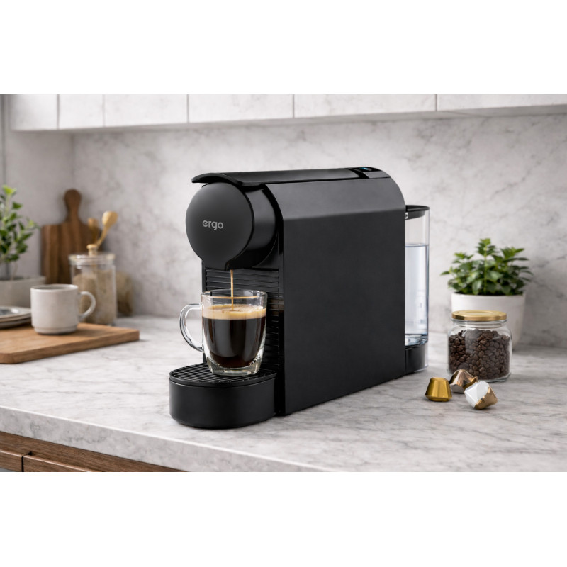 ERGO CCM-2509 – це капсульна кавоварка, яка завдяки сучасній технології приготування кави робить цей процес максимально простим, швидким і безтурботним. Від встановлення капсули до отримання чашки запашного напою – лічені секунди!