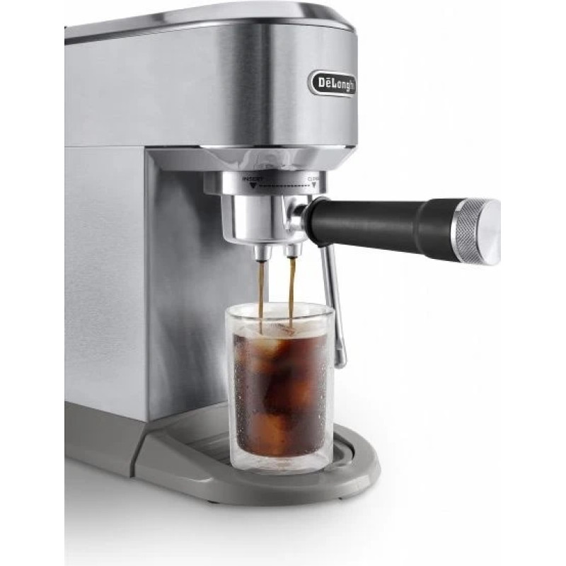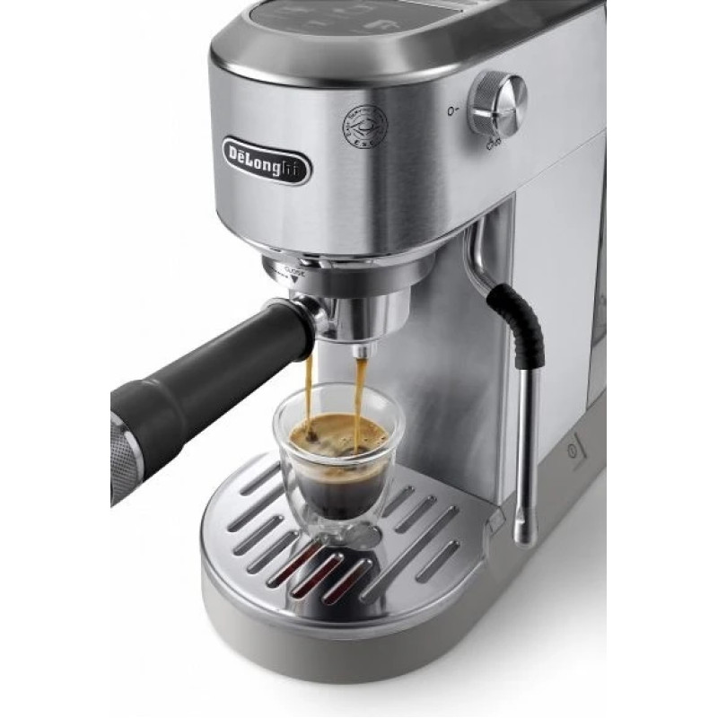 Регульована висота піддонів дозволяє використовувати склянки різної висоти. Варити каву можна як в улюбленій чашці, так і в елегантному кавовому стакані для латте макіато. Ємність резервуара для води De'Longhi становить 1,1 л.