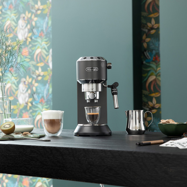 Насолодіться неймовірним еспресо з густою горіховою пінкою, приготованим без зайвих зусиль з De'Longhi Dedica!