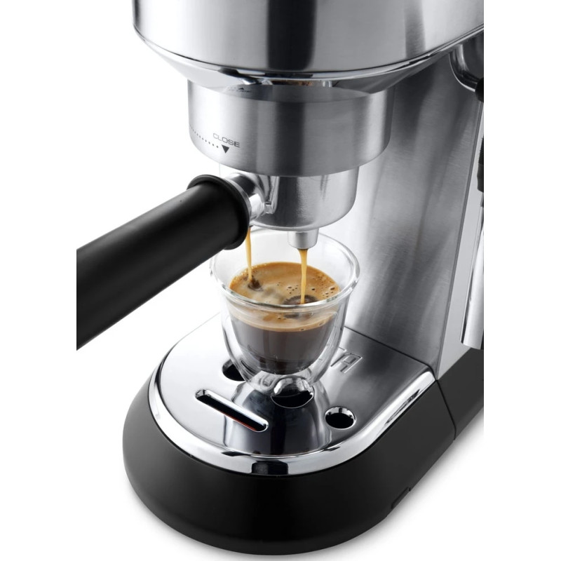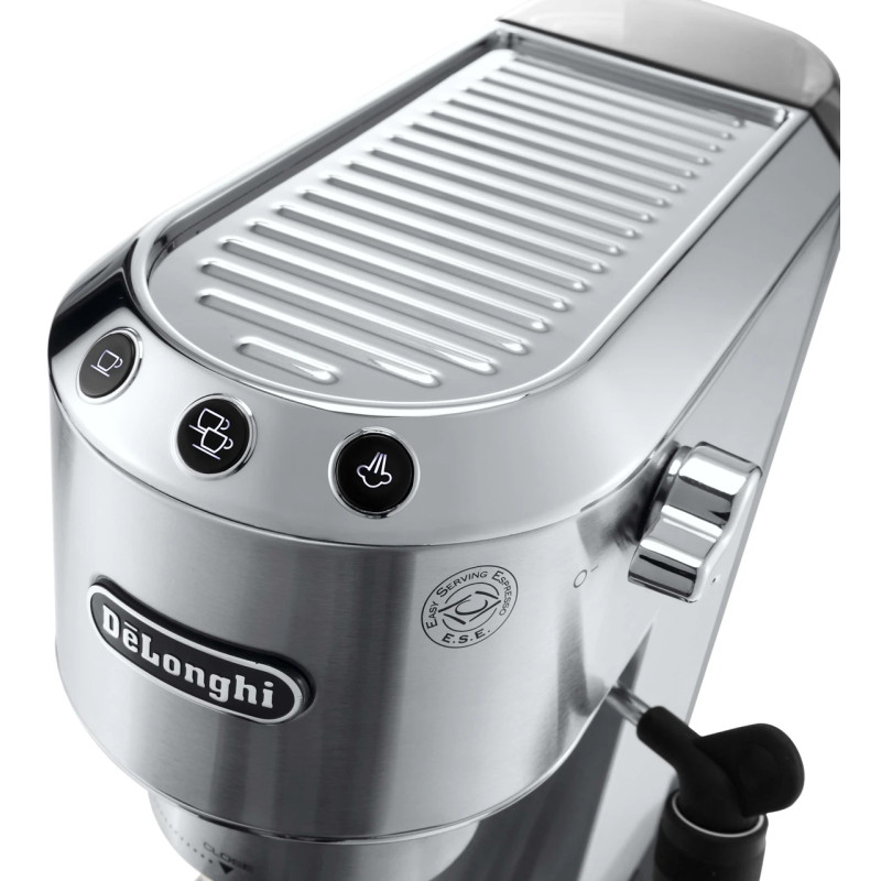 Ширина корпусу кавоварки всього 15 см, це робить її найтоншою моделлю в лінійці кавоварок Delonghi - вона легко вміщується навіть у невеликому просторі. Стильне поєднання металевого корпусу та хромованих елементів перетворює кавоварку на декоративну прикрасу вашої кухні. І ще одна особливість: спеціальна верхня панель підігріває чашки, адже правильний еспресо потрібно готувати у теплих чашках.