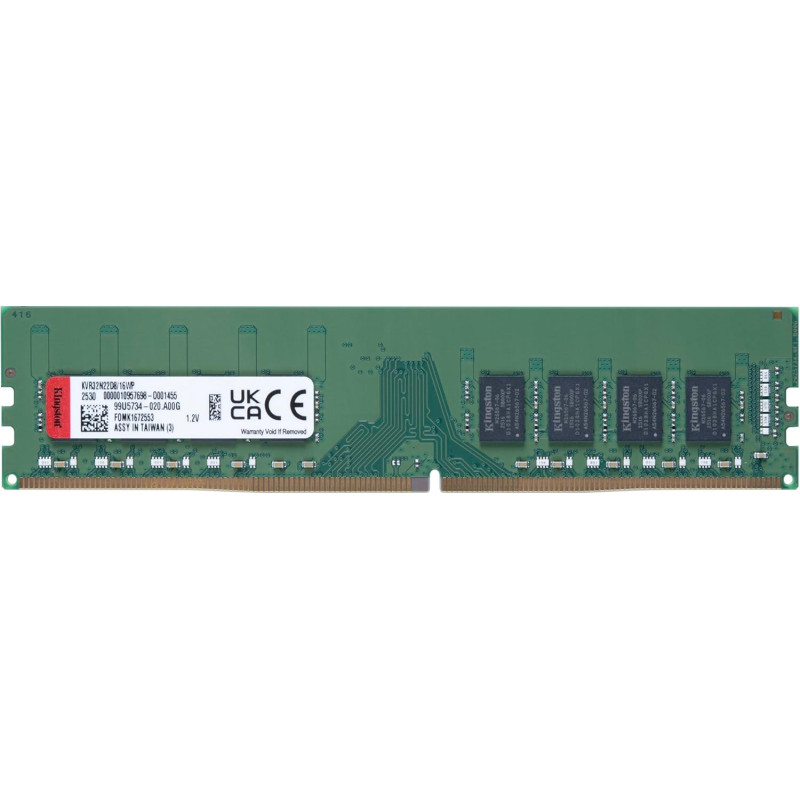 Оперативна пам'ять Kingston DDR4 16 ГБ забезпечує швидкодію на рівні 3200 МГц для ефективної роботи комп'ютера. Модуль відповідає стандарту JEDEC з таймінгами 22-22-22 на напрузі 1,2 В. Архітектура з вісьмома компонентами FBGA забезпечує стабільну роботу під час щоденного використання. Модуль сумісний із системами, що потребують енергоефективних рішень.