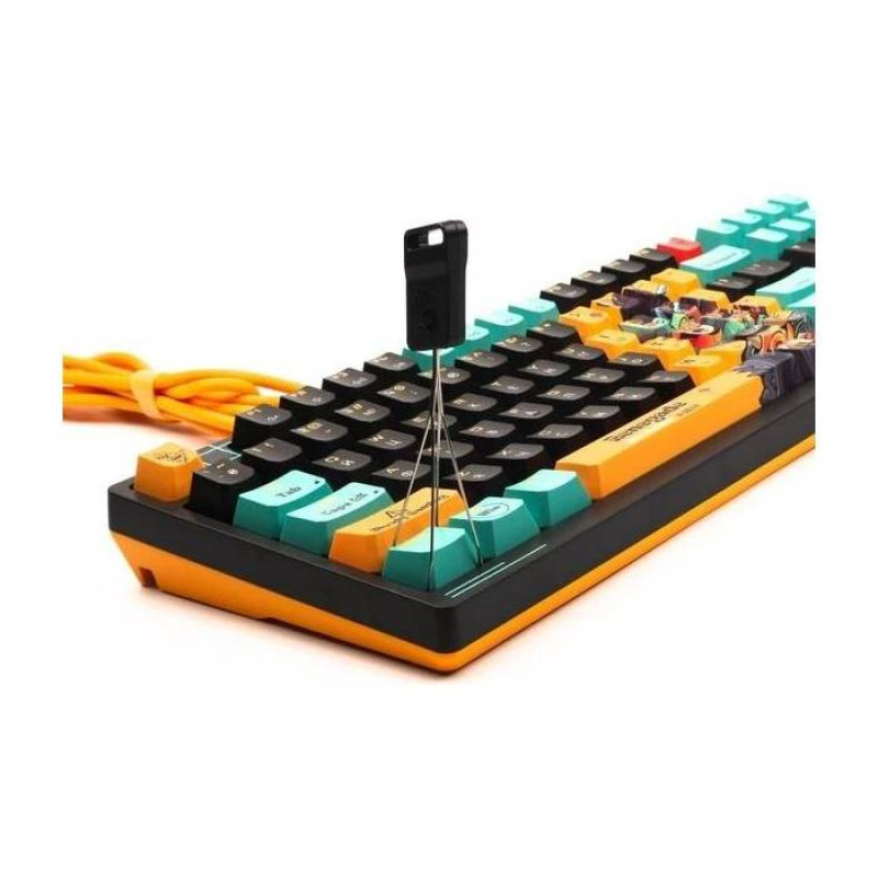 Для довговічності і зручності гри використано ковпачки з PBT-матеріалу, що підвищують стійкість клавіатури до зношування і вигоряння