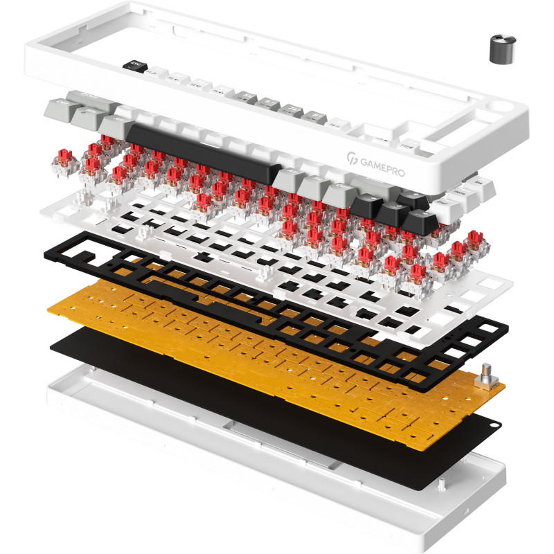 Клавіатура оснащена змащеними лінійними перемикачами Red, що забезпечують плавний хід і мінімальний опір під час натискання. Вони мають ресурс до 70 мільйонів натискань, що гарантує їхню довговічність. Тип побудови Gasket Mount з двома шумопоглинаючими шарами піни EVA знижує шум під час набору тексту та додає комфорту.