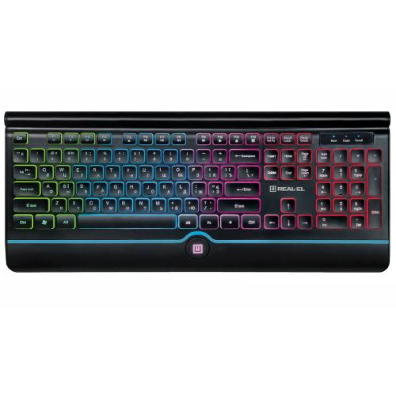 REAL-EL Comfort 8000 Backlit - це стильна та сучасна клавіатура з багатоколірним підсвічуванням символів та бічних граней клавіш, що додає їй естетичний вигляд та робить її привабливою для користувачів.
