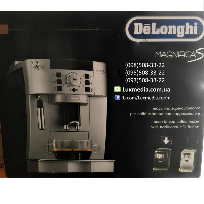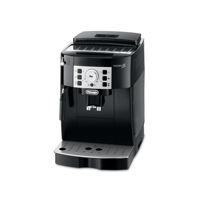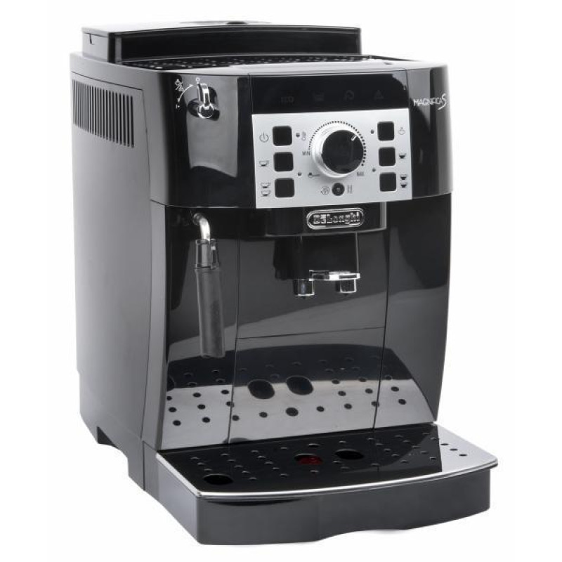 Кавова машина DeLonghi ECAM 22.110 B Magnifica S обладнана нової кнопкової панеллю управління. Обертанням регулятора ви можете змінити фортеця кави. А натискання кнопки дозволяє вибрати порцію необхідного обсягу. Температуру води або жорсткість за своїм бажанням можна запрограмувати в цій моделі кавоварки. Потужність приладу 1450 Вт. Тиск, що створюється в системі, становить 15 бар, це ідеальне значення для якісної екстракції кавового порошку.