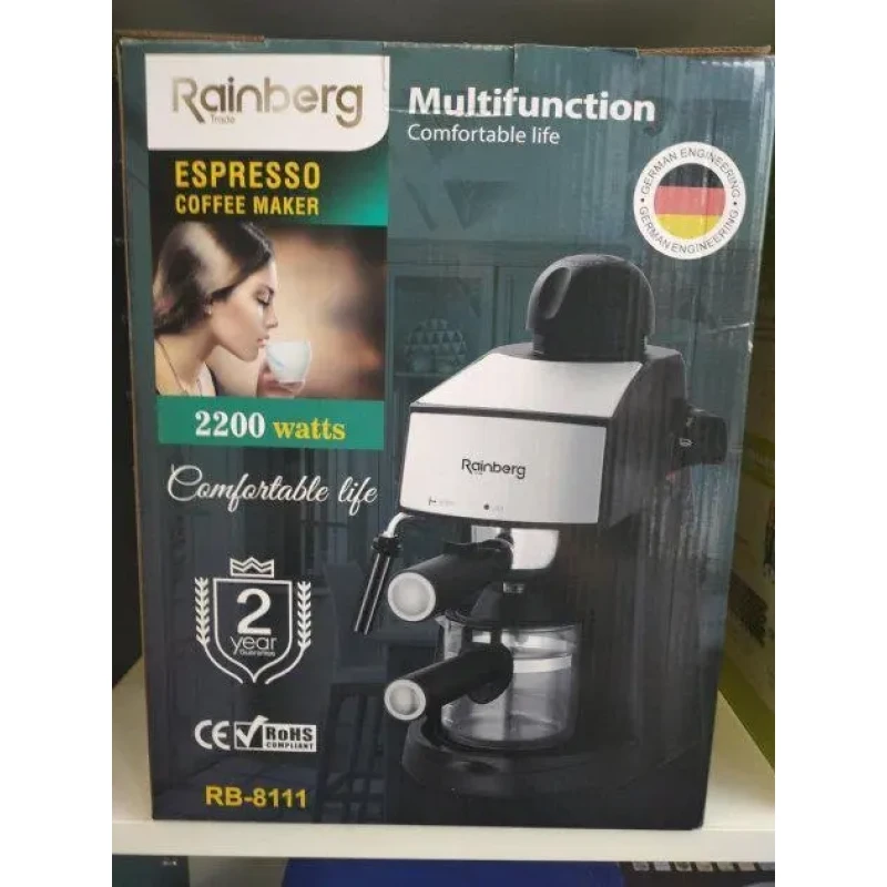 Кавомашина Rainberg RB-8111 — сучасний кухонний прилад для швидкого приготування кави. Цей кухонний прилад допоможе приготувати каву та інші напої на основі кави. Наприклад, ви зможете зробити американо, додавши до порції еспресо трохи гарячої води. Або побалувати себе кавою з морозивом, лікером, корицею.