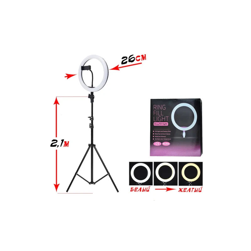 Головними перевагами кільцевої лампи Ring Fill Light 26см є її низька ціна та висока яскравість. Досягається це за рахунок збільшення кількості світлодіодів та використання більш простого пластикового корпусу лампи.