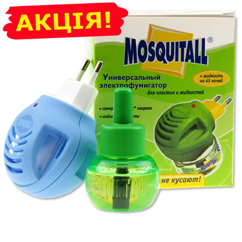 Mosquitall комплект від комарів, прилад + рідина 45 ночей універсальний захист