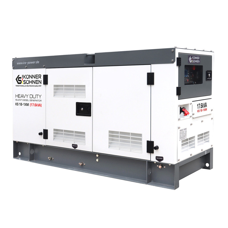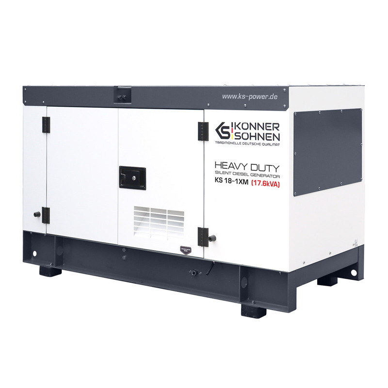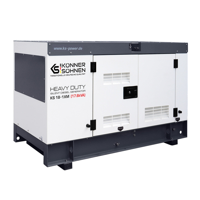 Дизельний генератор Konner&Sohnen KS 18-1XM забезпечує номінальну потужність 16 кВА при напрузі 230 В з електростартером. Агрегат оснащений двигуном Xinchai з водяним охолодженням та шумозахисним антивандальним корпусом для роботи в різних средах. Передстартовий підігрів та вихід ATS полегшують запуск у холод та інтеграцію із системами автоматичного перемикання.