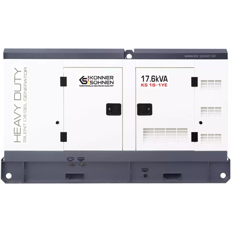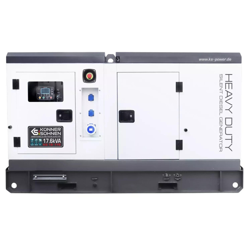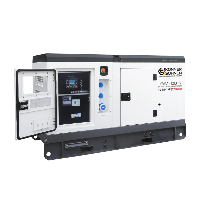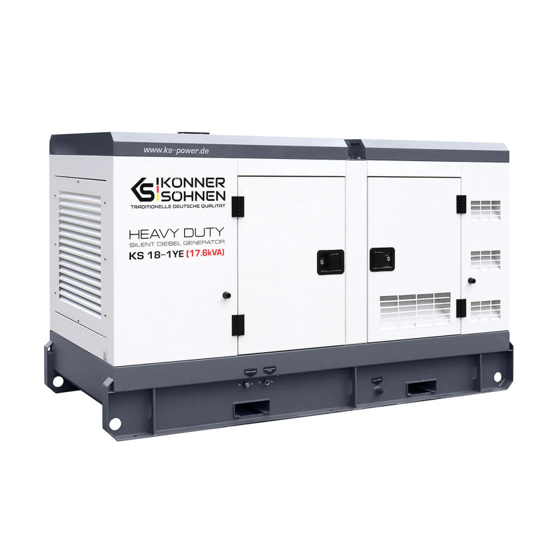 Дизельний генератор Konner&Sohnen KS 18-1YE - це потужна однофазна електростанція для стабільного живлення приватних будинків та комерційних об'єктів. Модель оснащена 4-циліндровим двигуном YangDong 1500 об/хв, що демонструє високу надійність та довговічність. Шумозахисний корпус забезпечує тиху роботу та захищає обладнання від зовнішніх впливів. Вбудований цифровий контролер Datakom D300 слідкує за всіма параметрами і підтримує зручне керування.