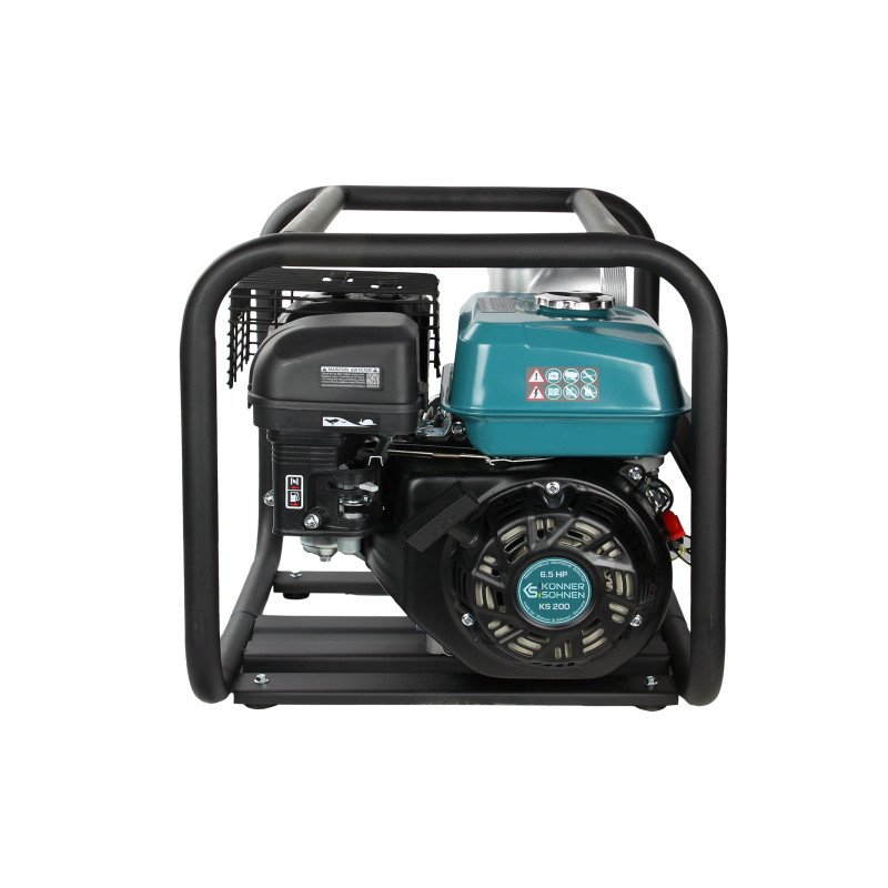 Бензинова мотопомпа Konner & Söhnen KS 80 призначена для інтенсивного перекачування чистої води з продуктивністю до 1000 л/хв. Модель оснащена чотиритактним двигуном потужністю 7,0 к. с., що забезпечує стабільну роботу при тривалих навантаженнях. Діаметр патрубків 80 мм дає змогу швидко переміщувати великі об'єми води. Посилена рама та антивібраційні опори підвищують зручність експлуатації.