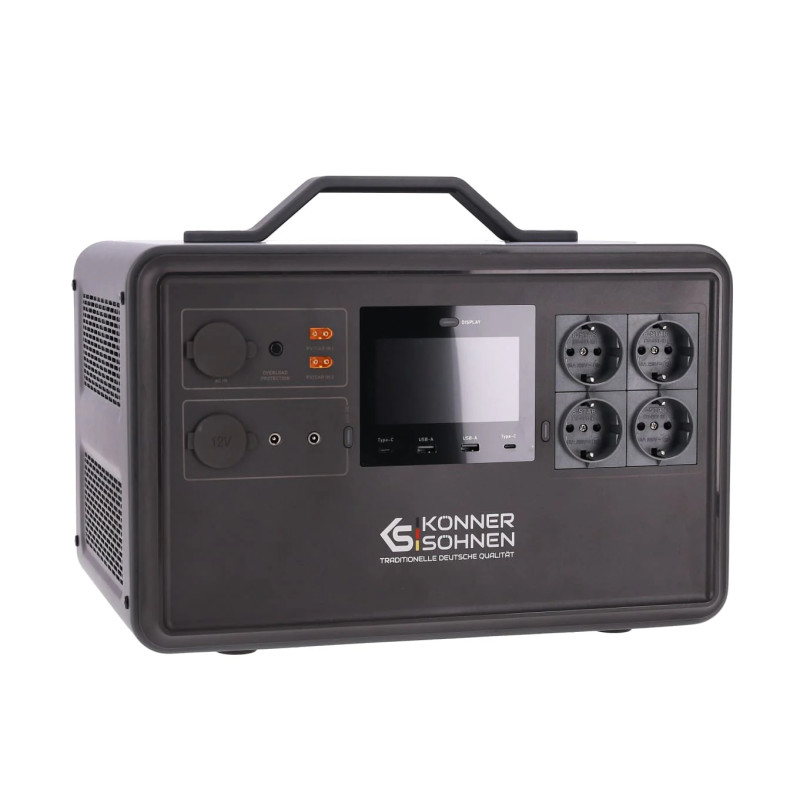 Портативна електростанція Konner&Sohnen KS 2400PS — універсальний джерело живлення з акумулятором LiFePO4 для дому, офісу чи відпочинку. Підтримує USB Power Delivery, швидке заряджання, дистанційне керування через програму Power Zero та роботу як блок безперебійного живлення (ББП). Має цифровий дисплей, багаторівневий захист та можливість заряджання від сонячних панелей, мережі 230 В або автомобіля 12 В.